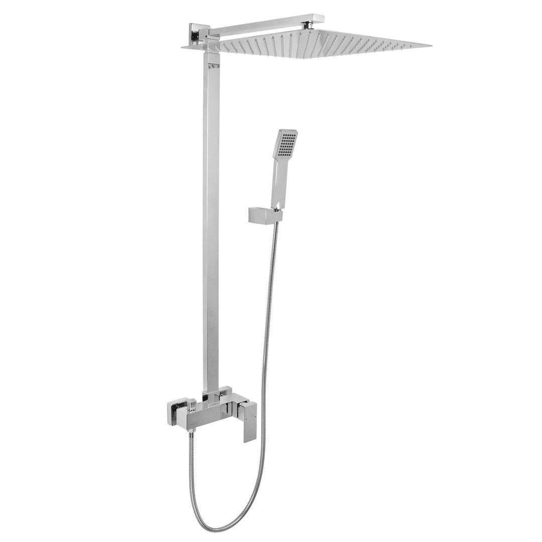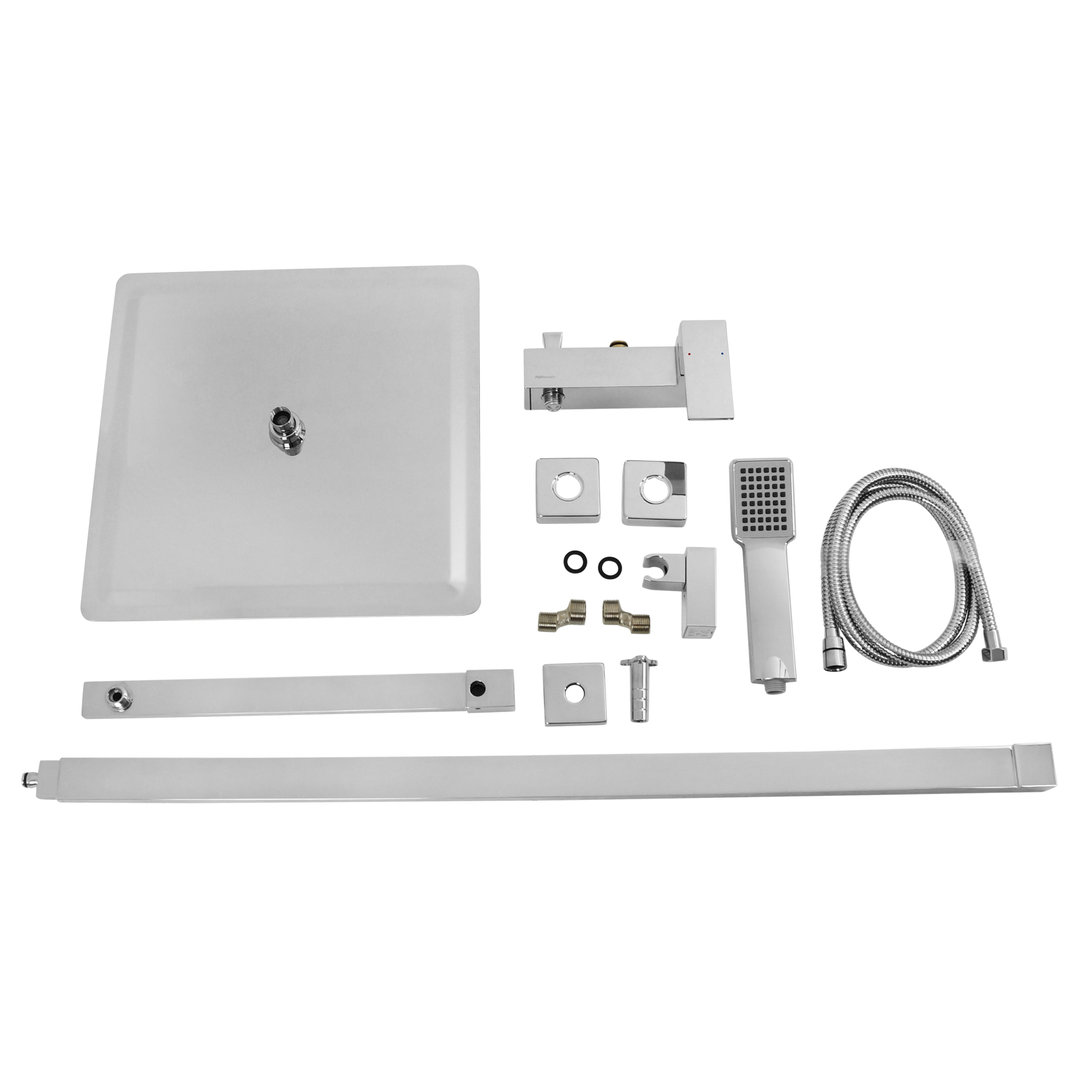 Lieferumfang: Duscharmatur, Regenbrausekopf, Rohrsystem, Handbrause, Brausehalterung, Brauseschlauch