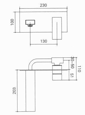 Querschnitt Einhebelmischer 4,5 cm x 4,5 cm