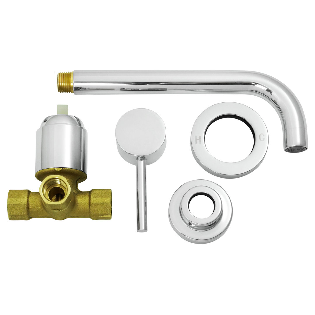 Die Anordnung und der Abstand Auslauf-Mischelement können frei gewählt werden.