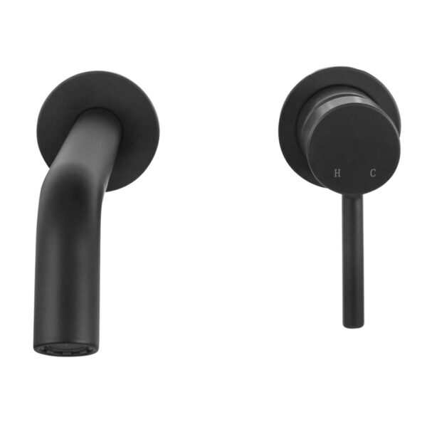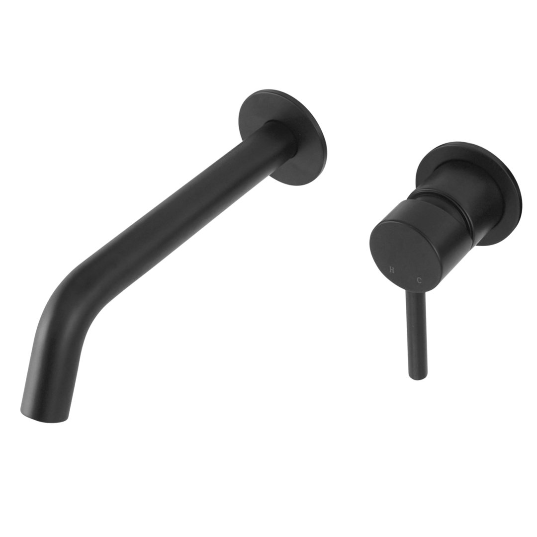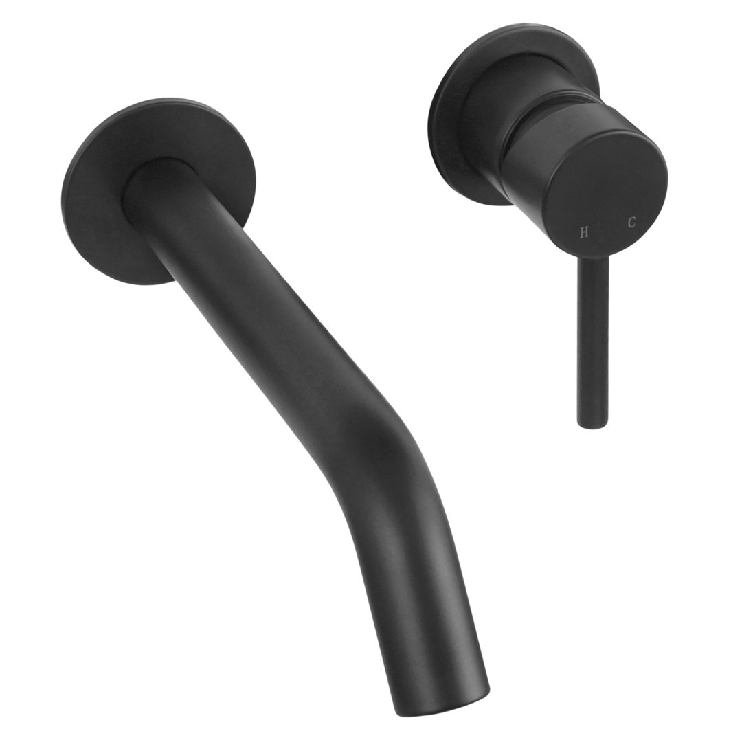 Material: Messing / Finish: schwarz, matt / Kartusche mit keramischen Dichtungsscheiben / genormte 1/2-Zoll Anschlüsse / Durchmesser Abdeckrosette 6,0 cm / Durchmesser Auslauf 2,4 cm / Ausladung 21,4 cm