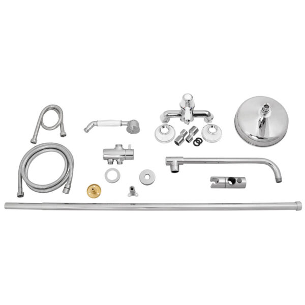 Lieferumfang: Duscharmatur, Regenbrausekopf, Rohrsystem, Handbrause
