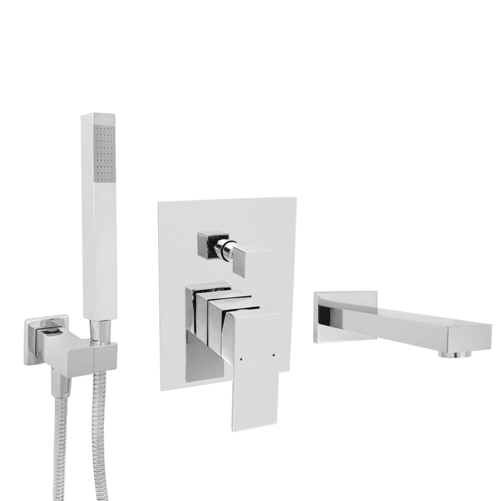 Lieferumfang: Unterputzarmatur, Wanneneinlauf, Handbrause, Wandanschlussbogen mit Brausehalterung, Brauseschlauch