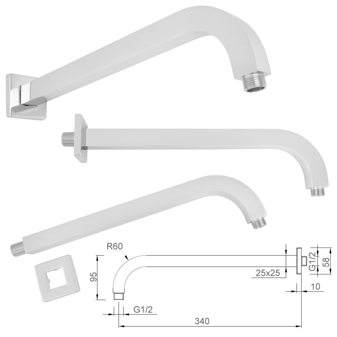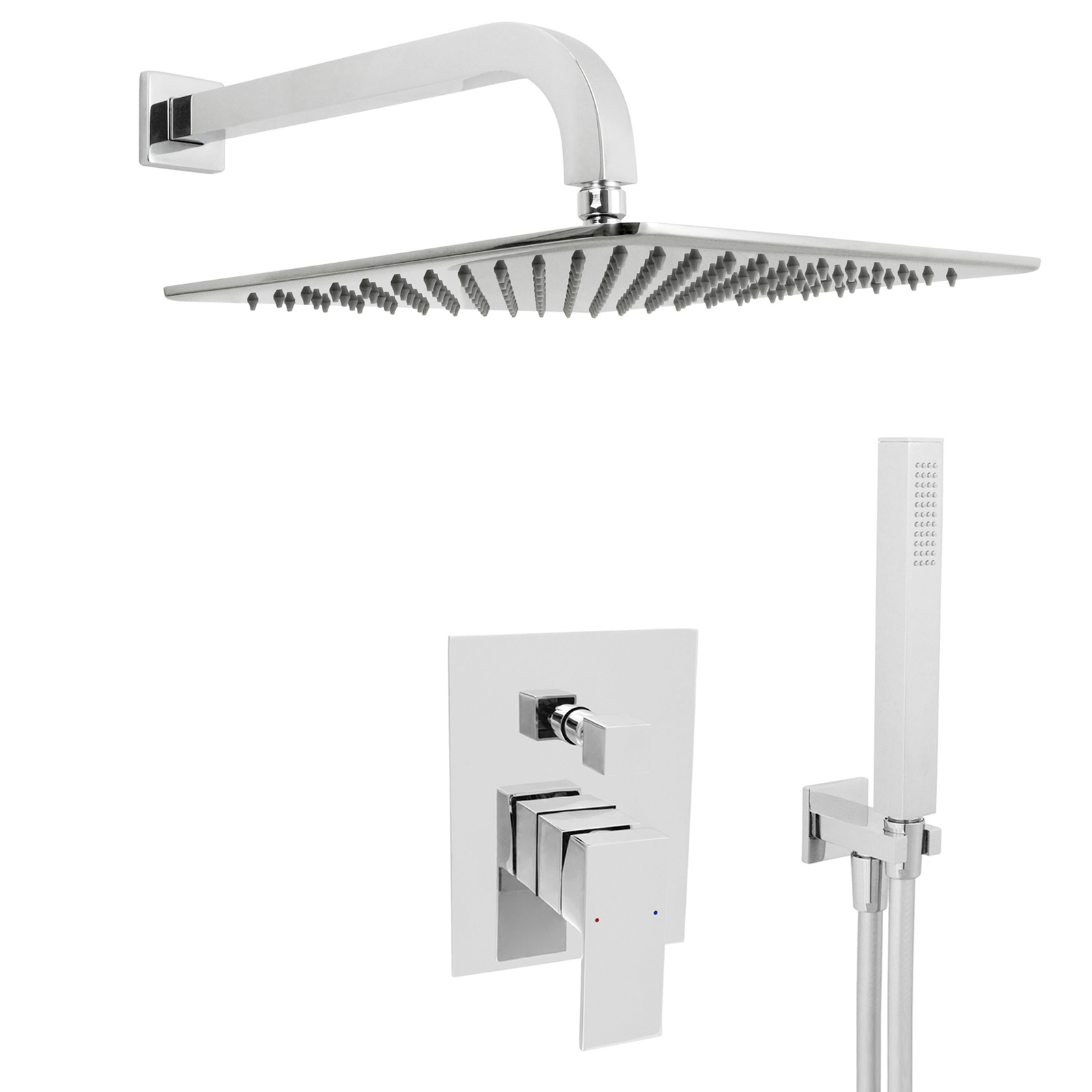 Lieferumfang: Unterputzarmatur, Regenbrause, Zulaufarm, Handbrause, Wandanschlussbogen mit Brausehalterung, Brauseschlauch