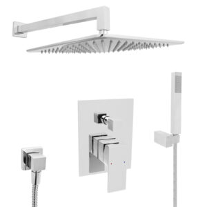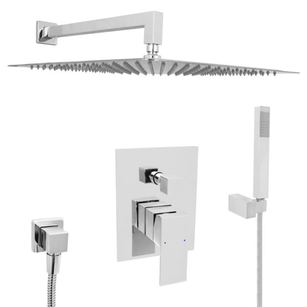 Lieferumfang: Unterputzarmatur, Regenbrause, Zulaufarm, Handbrause, Brausehalterung, Wandanschlussbogen, Brauseschlauch