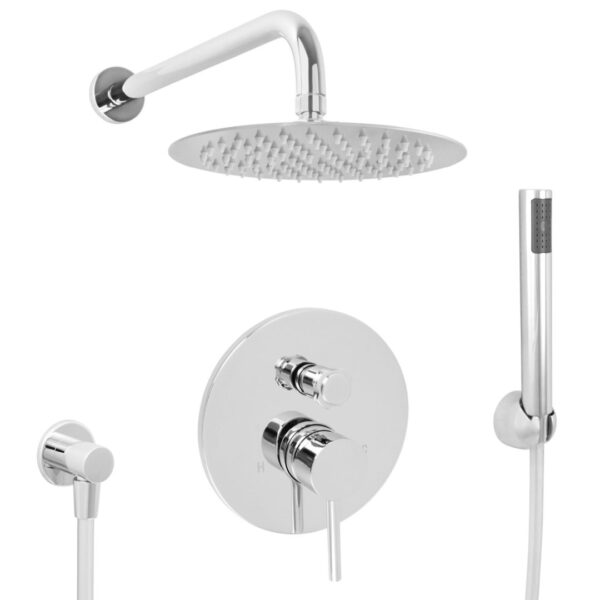 Lieferumfang: Unterputzarmatur, Regenbrause, Zulaufarm, Handbrause, Brausehalterung, Wandanschlussbogen, Brauseschlauch