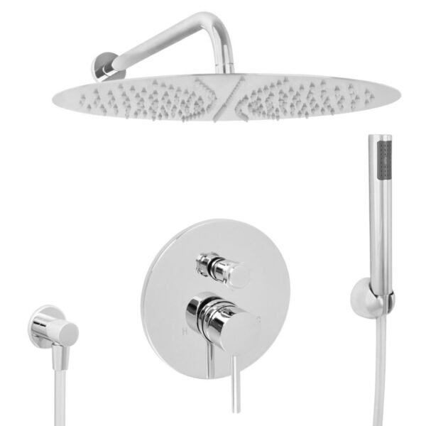 Lieferumfang: Unterputzarmatur, Regenbrause, Zulaufarm, Handbrause, Brausehalterung, Wandanschlussbogen, Brauseschlauch