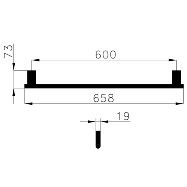 Material: Metall, verchromt / Finish: schwarz, matt / Gesamtbreite: 65,8 cm / Ausladung: 7,3 cm / Abstand Halterungen: 60,0 cm / Bohrlochabstand: 19,5 mm