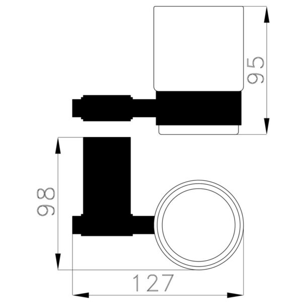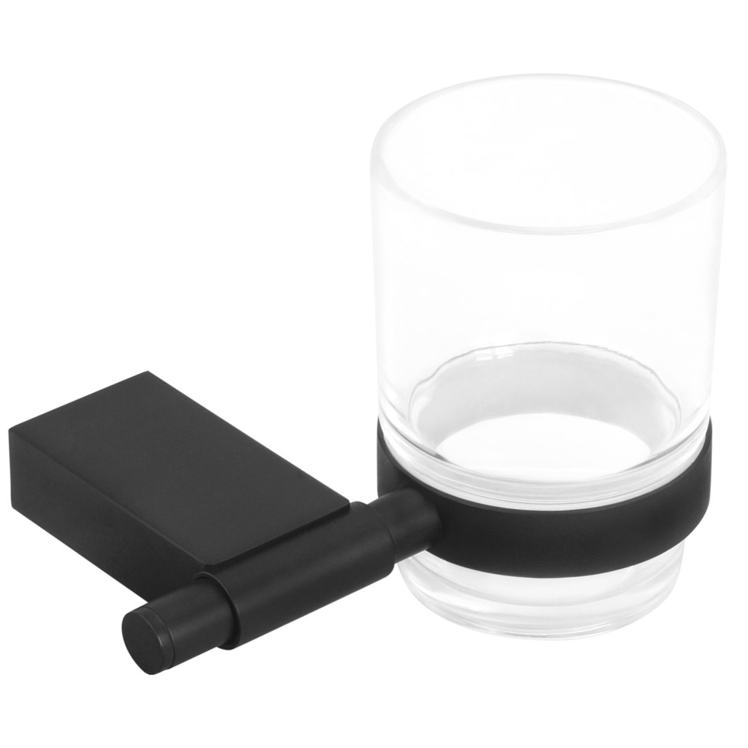 Material Halterung: Metall / Finish: schwarz matt / Material Becher: Klarglas / Gesamtbreite: 12,7 cm / Ausladung: 9,8 cm / Bohrlochabstand: 19,5mm