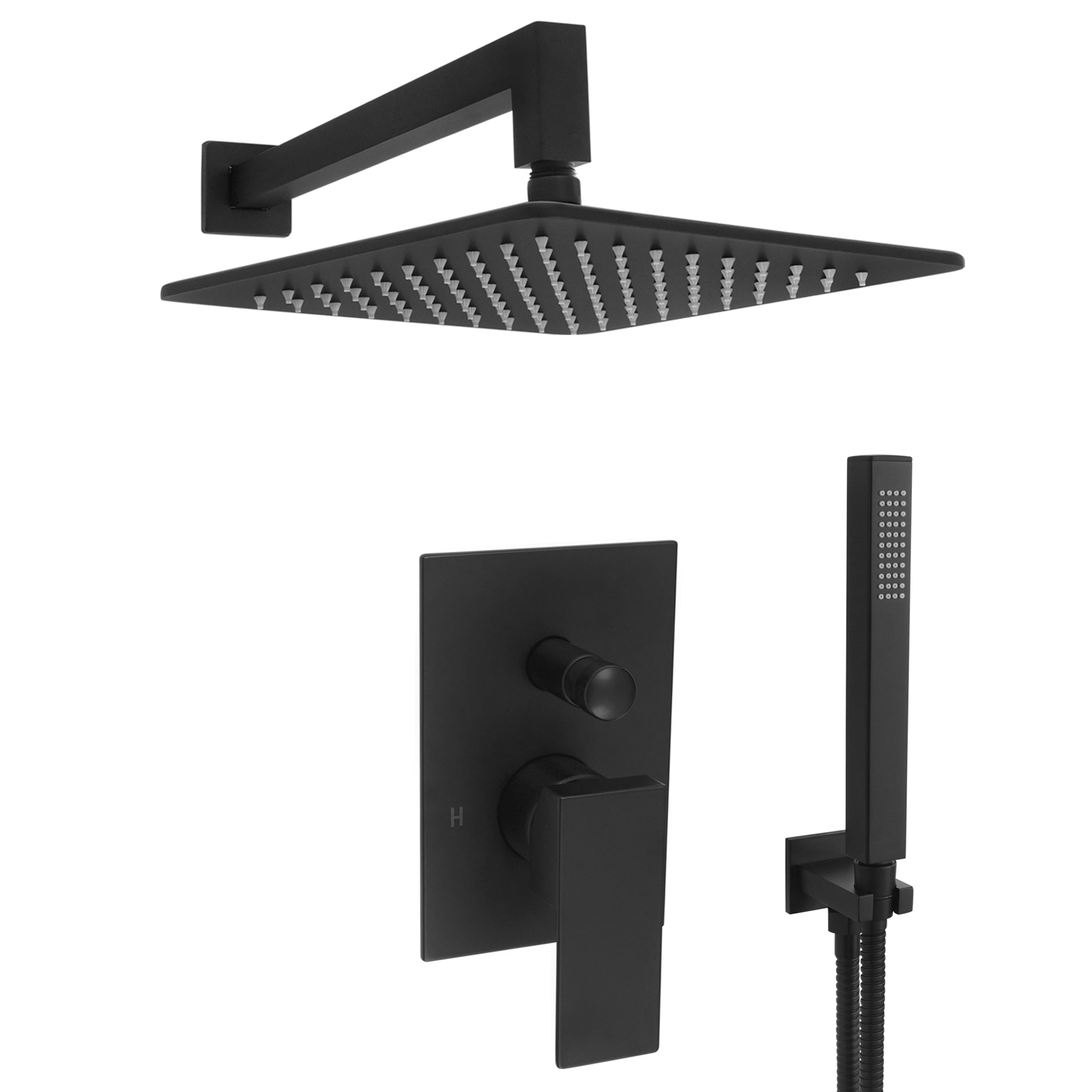 Lieferumfang: Unterputz-Armatur, Regenbrause, Zulaufarm, Handbrause, Wandanschlussbogen mit Handbrausehalterung, Brauseschlauch
