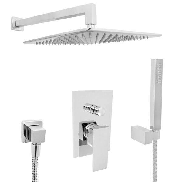 Lieferumfang: Unterputzarmatur inkl. Montagebox, Regenbrause, Zulaufarm, Handbrause, Brausehalterung, Wandanschlussbogen, Brauseschlauch