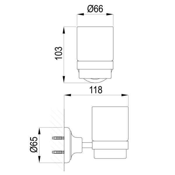 Material Halterung: Messing, verchromt / Material Becher: Klarglas / Gesamthöhe: 10,3 cm / Ausladung 11,5 cm / Durchmesser Rosette 6,5 cm / Bohrlochabstand 24 mm