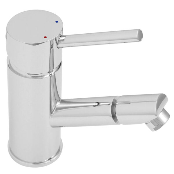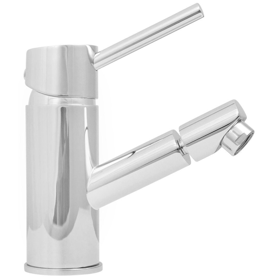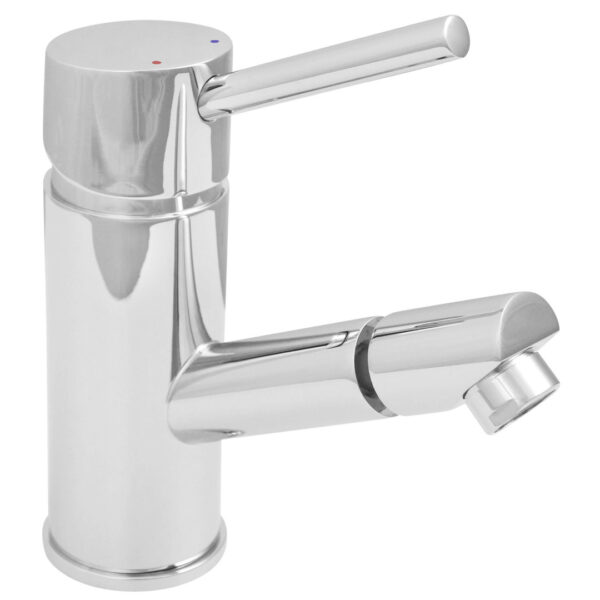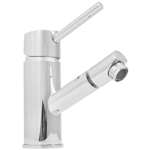 Das vordere Ende des Auslaufs kann bewegt und gedreht werden. Auf der Rückseite der Armatur befindet sich eine Excenterstangendurchführung.