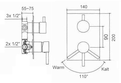 Welfenstein Unterputz Armatur H-BM34020 mit 3-Wege Umsteller