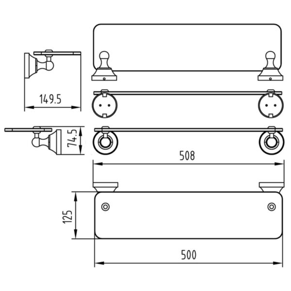 Maße Glas 50,0 x 12,5 x 0,8 cm