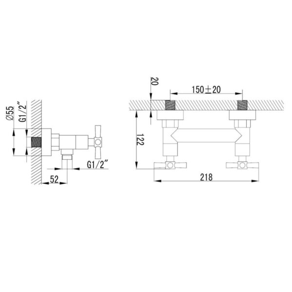 (gemessen Rohrmitte bis Rohrmitte – deutscher Standard)