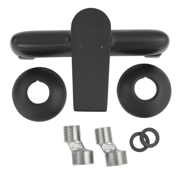 Material: Messing / 1x 1/2-Zoll-Außengewinde / Finish: schwarz, matt / Breite der Armatur 18,5 cm / Tiefe 13,5 / Länge Mischhebel ca. 10,7 cm