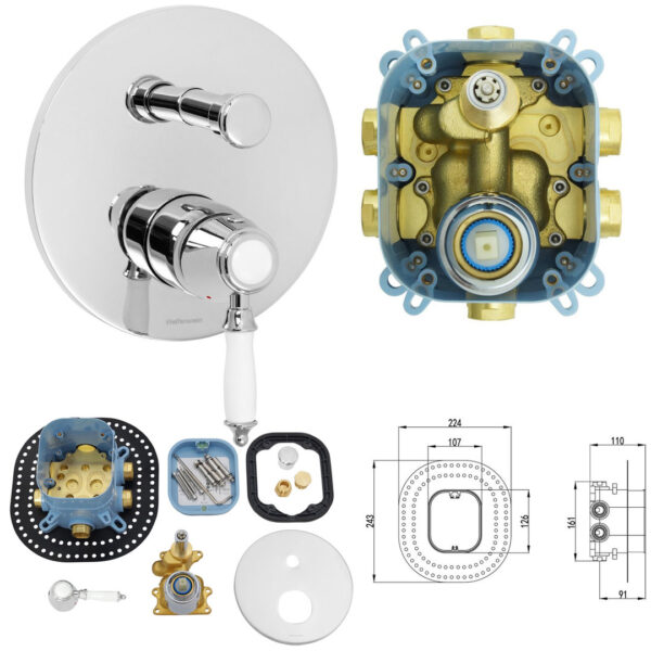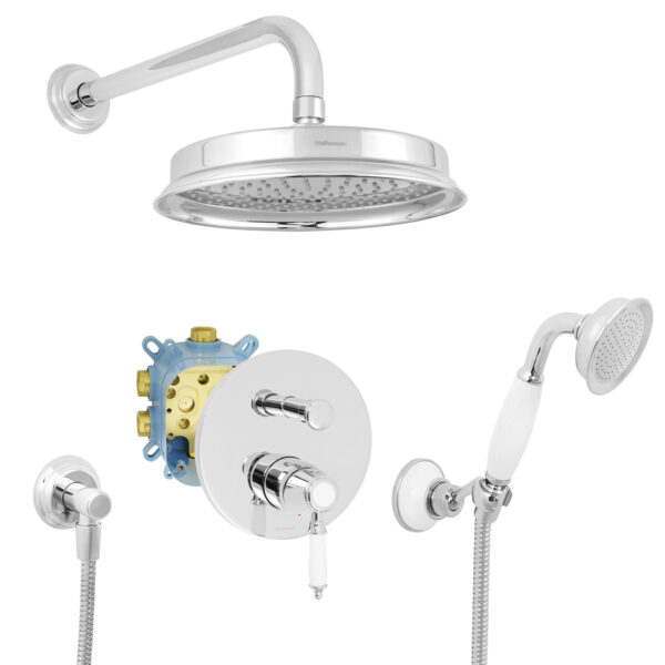 Lieferumfang: Unterputzarmatur inkl. Montagebox, Regenbrause, Zulaufarm, Handbrause, Brausehalterung, Wandanschlussbogen, Brauseschlauch