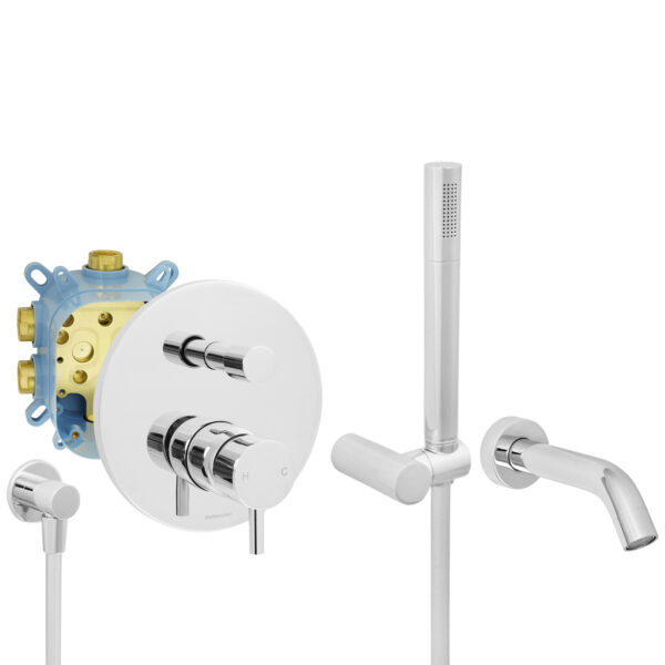 Lieferumfang: Unterputzarmatur inkl. Montagebox, Handbrause, Brausehalterung, Wandanschlussbogen, Brauseschlauch, Wanneneinlauf