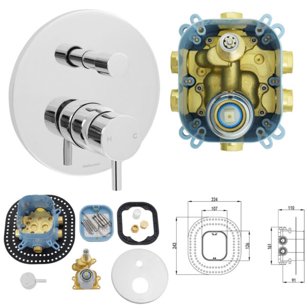 Welfenstein Unterputz-Set EB2-R26W Montagebox schwenkbarer Wanneneinlauf