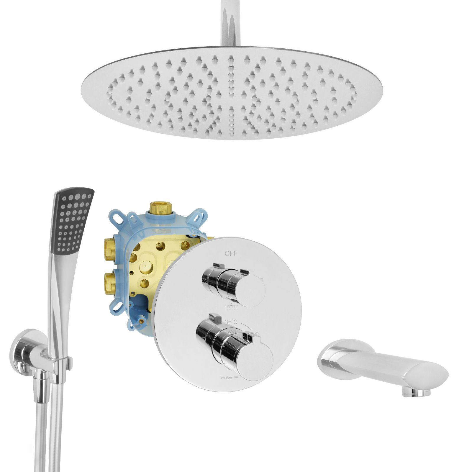 Welfenstein Thermostat Unterputz-Set EBT-O21W Regenbrause Wanneneinlauf oval