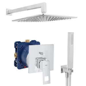 Lieferumfang: Grohe Armatur Eurocube 24062000, Grohe Unterputzeinheit Rapido SmartBox 35600000, Wanneneinlauf, Stabhandbrause, Wandanschlussbogen mit Brausehalterung, Brauseschlauch