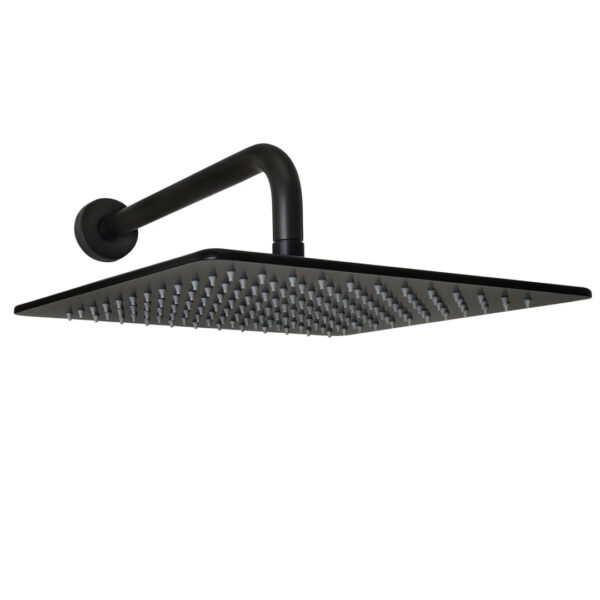 Regenbrause Material: Edelstahl / Durchmesser: 30×30 cm / Zulaufarm Material: Messing / Länge 37,2 cm / Finish: schwarz, matt