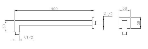 Querschnitt Zulaufarm 2,5 x 2,5 cm