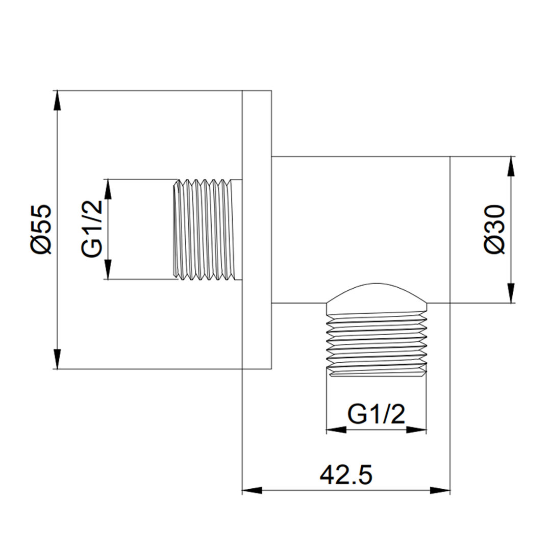 Material: Messing / 2x 1/2-Zoll Außengewinde / Finish: schwarz, matt / sichtbare Länge nach Montage 42,5 mm