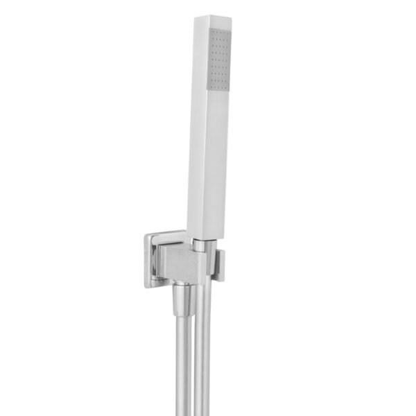 Lieferumfang: Wandanschlussbogen mit integrierter Brausehalterung, Brauseschlauch, Stabhandbrause