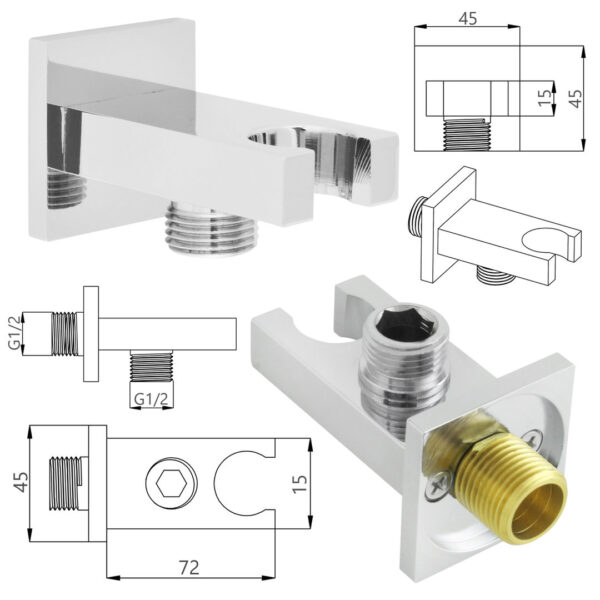 1. Wandanschlussbogen mit integrierter Brausehalterung: