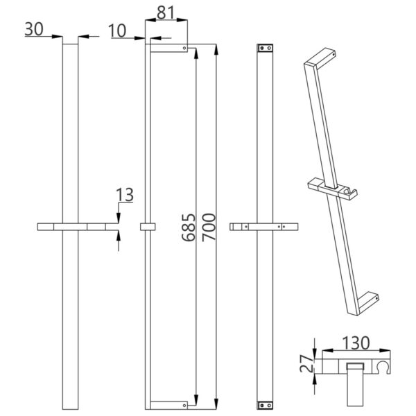 Welfenstein Brausestange HZ13 Duschstange Messing