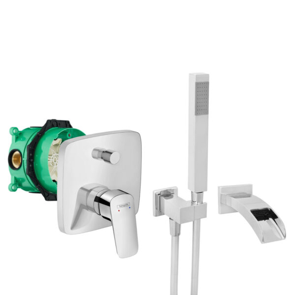 Unterputz-Set mit hansgrohe Logis-5E Wasserfall Wanneneinlauf