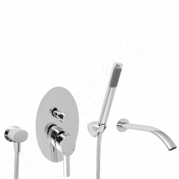 Lieferumfang: Unterputz-Armatur, Brauseschlauch, Stabhandbrause, Halterung für Handbrausen, Wandanschlussbogen, Wanneneinlauf