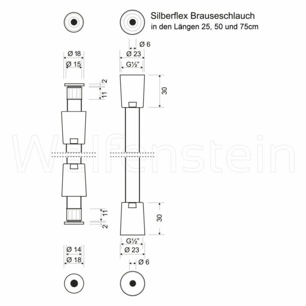 Welfenstein Brauseschlauch 25 cm Silberflex – SF025 – 2. Wahl