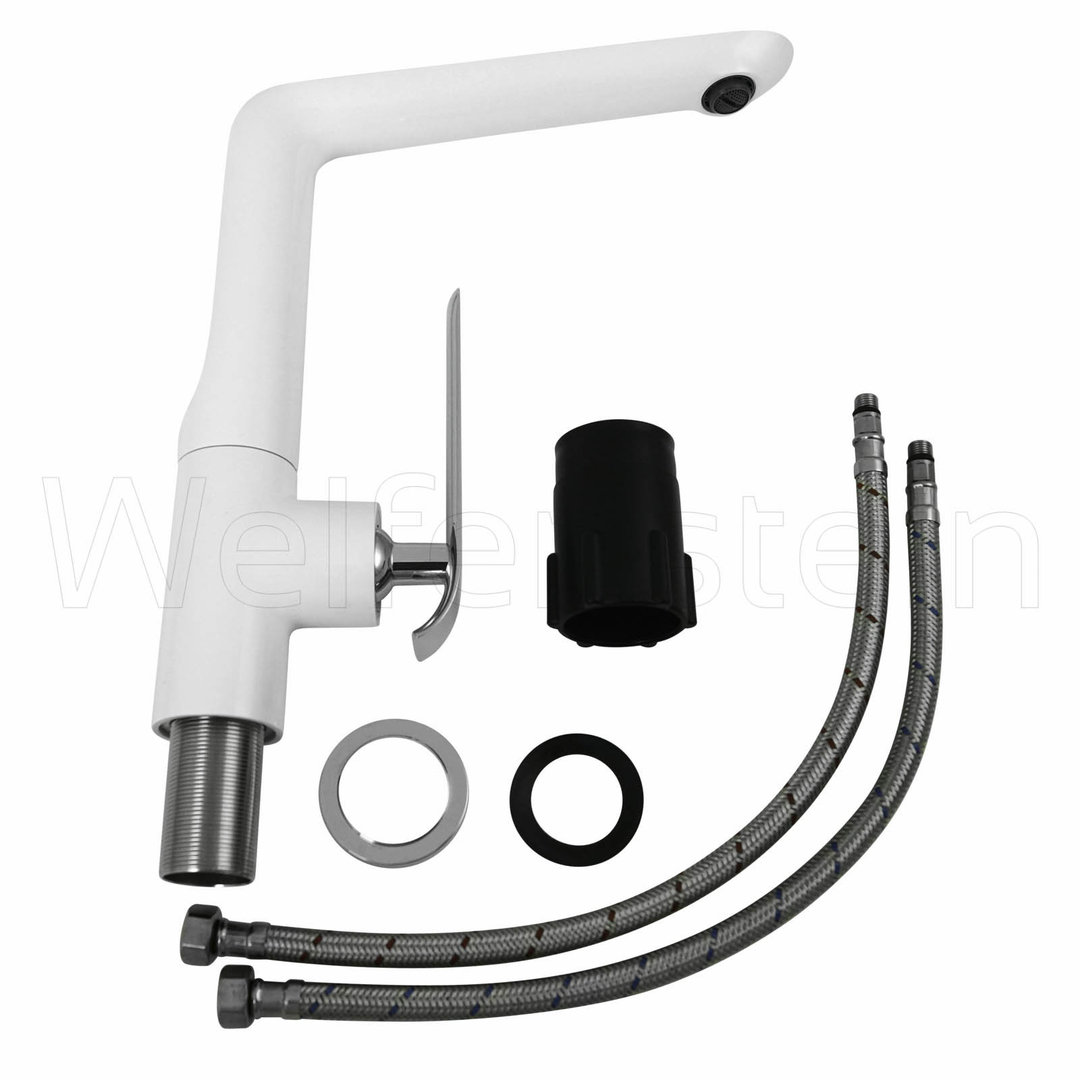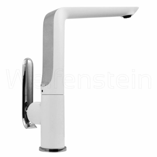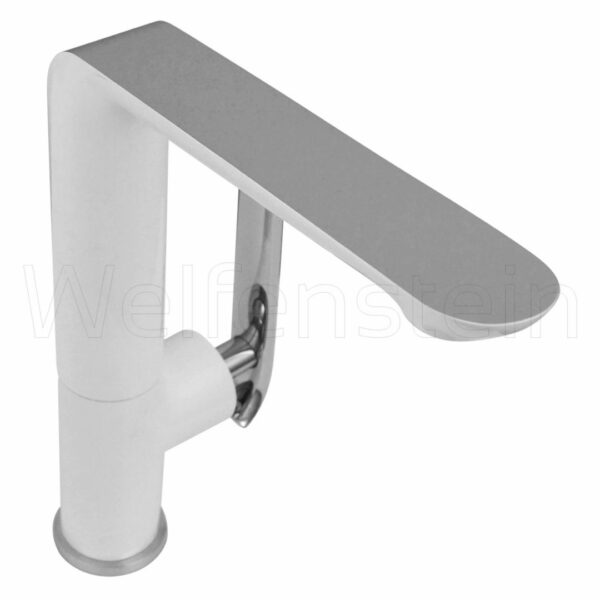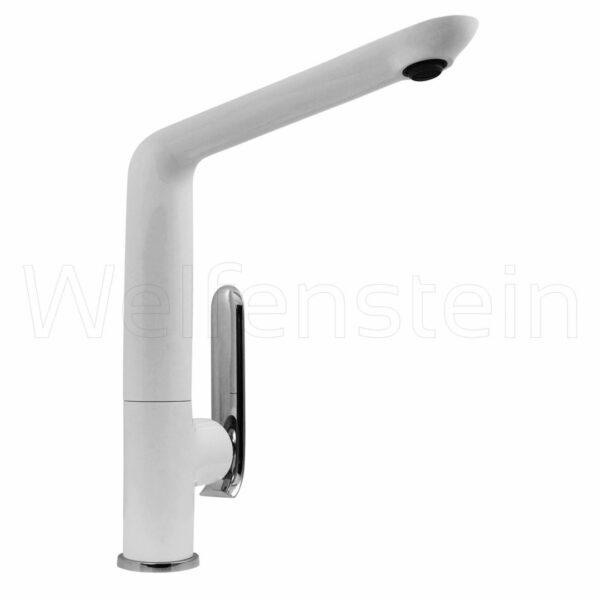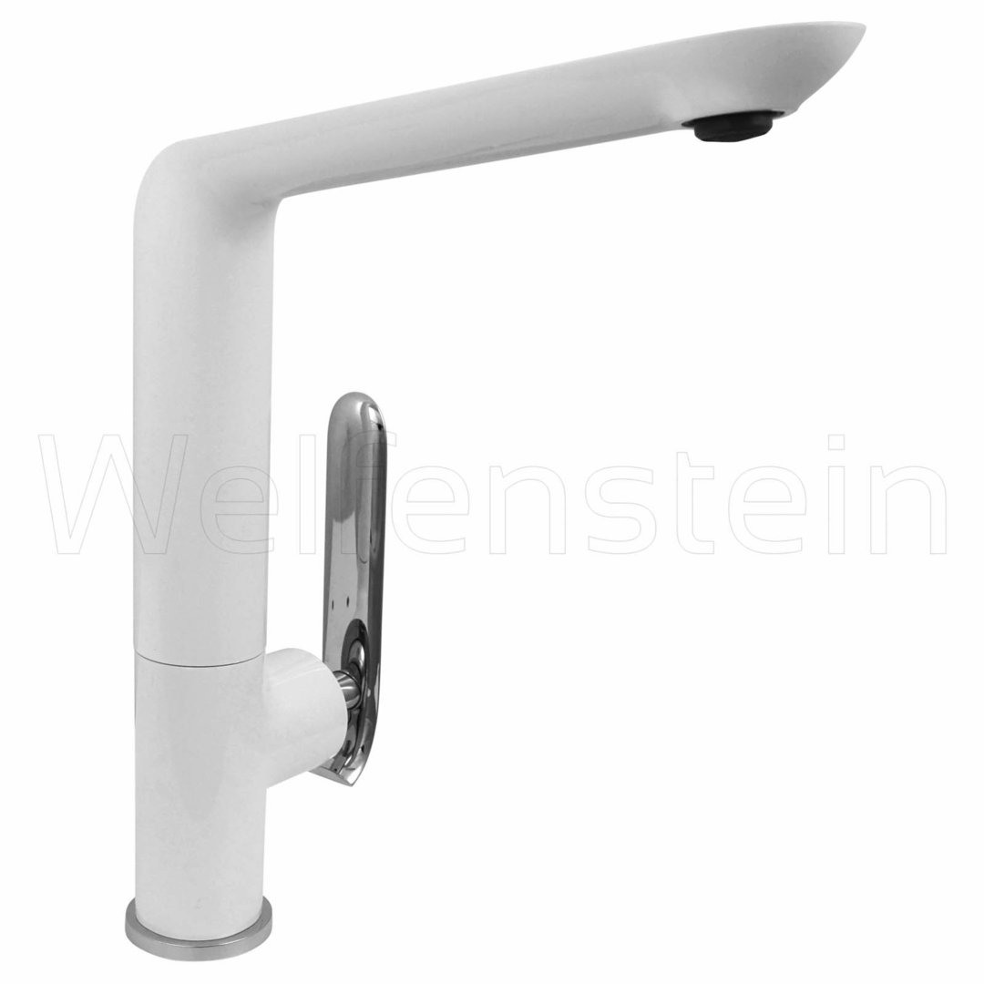 Unterseite des Auslaufs und Armaturenkörper weißer Einbrennlack