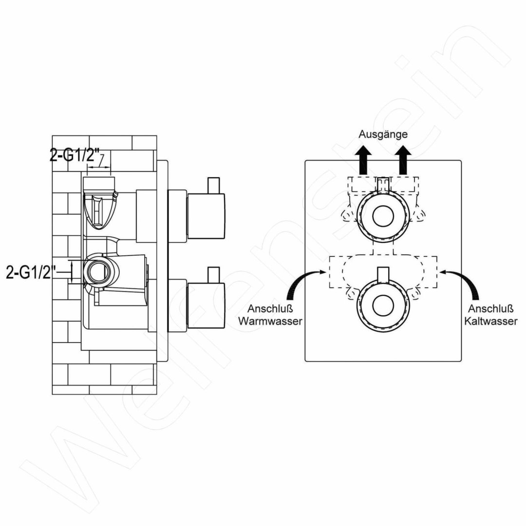 für Welfenstein Thermostat Armatur T-010 mit 2-Wege Umsteller