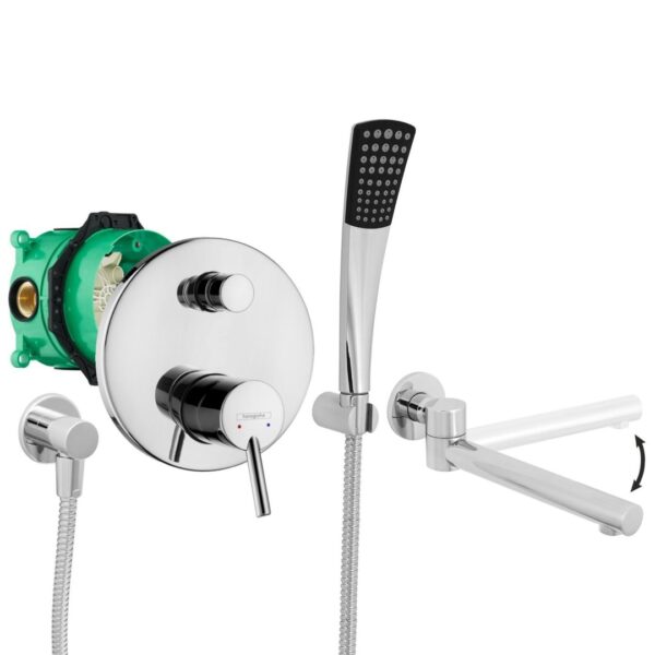 Lieferumfang: hansgrohe Armatur Talis S 32475000, hansgrohe Grundkörper iBox 01800180, schwenkbarer Wanneneinlauf, Handbrause, Halterung für Handbrausen, Wandanschlussbogen, Brauseschlauch