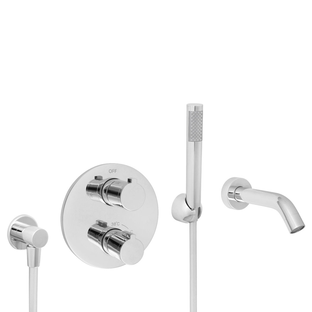 Lieferumfang: Thermostat-Unterputzarmatur, Wanneneinlauf, Stabhandbrause, Halterung für Handbrausen, Wandanschlussbogen, Brauseschlauch