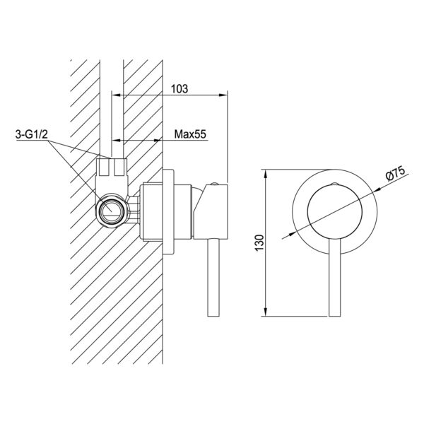 3x 1/2-Zoll Anschlußgewinde