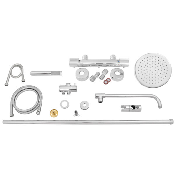 Lieferumfang: hansgrohe Thermostatarmatur Versostat 15368000, Regendusche, Rohrsystem, Handbrause