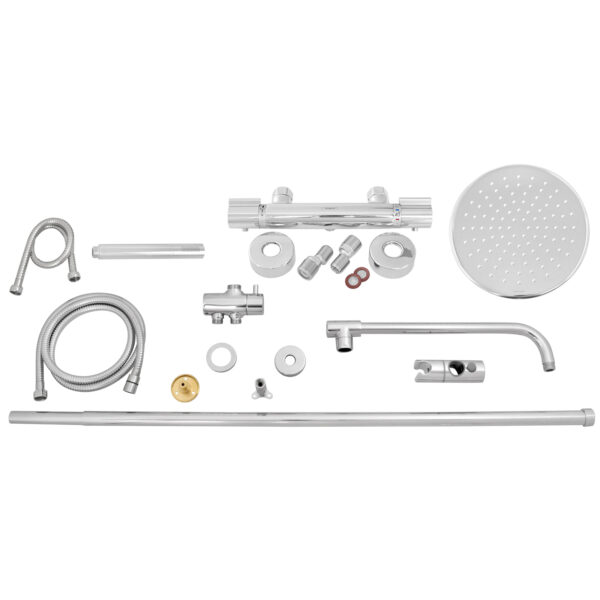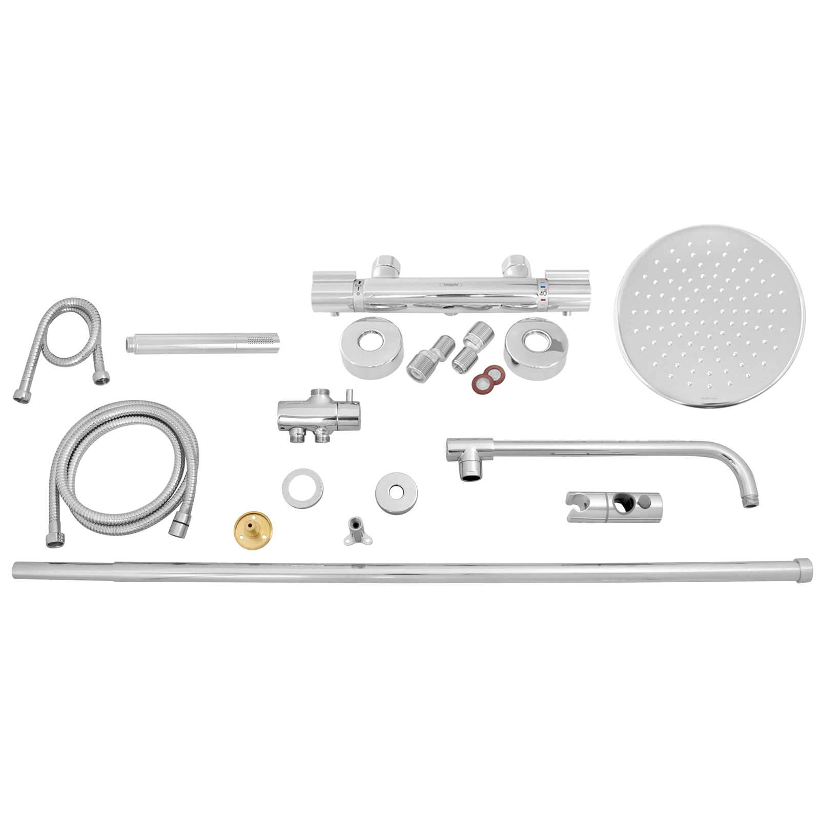 Lieferumfang: hansgrohe Thermostatarmatur Versostat 15368000, Regendusche, Rohrsystem, Handbrause