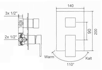 Welfenstein Unterputz Armatur H-VM24051 mit 3-Wege Umsteller