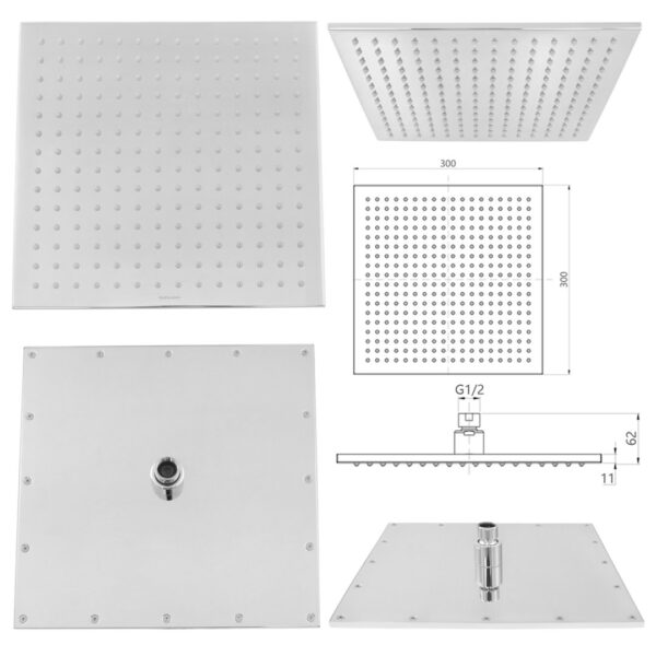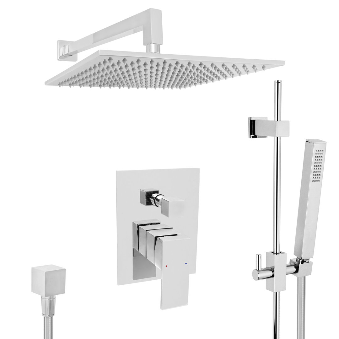 Lieferumfang: Unterputz-Armatur, Regenbrause, Zulaufarm, Brausestange, Stabhandbrause, Wandanschlussbogen, Brauseschlauch