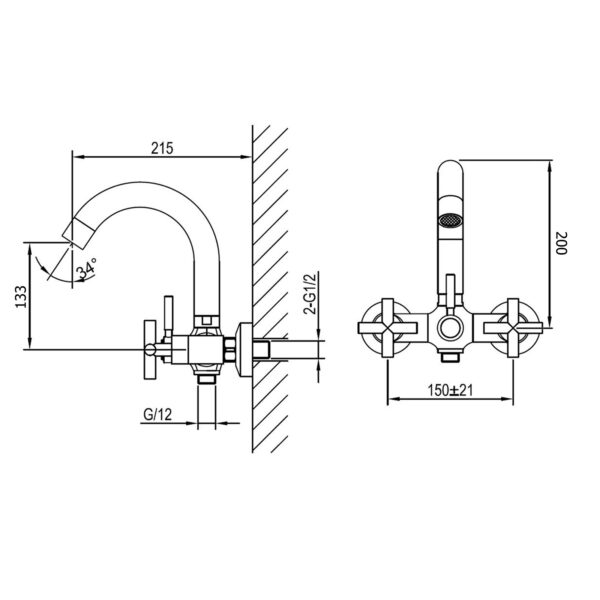 Aufputzarmatur für 15 cm Rohrabstand (gemessen Rohrmitte bis Rohrmitte – deutscher Standard)
