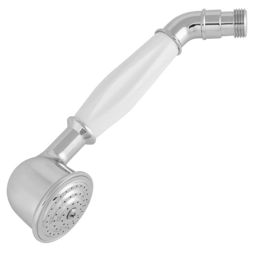 Handbrause (Modell 1304): Material Metall, verchromt – weißer Griff: Kunststoff