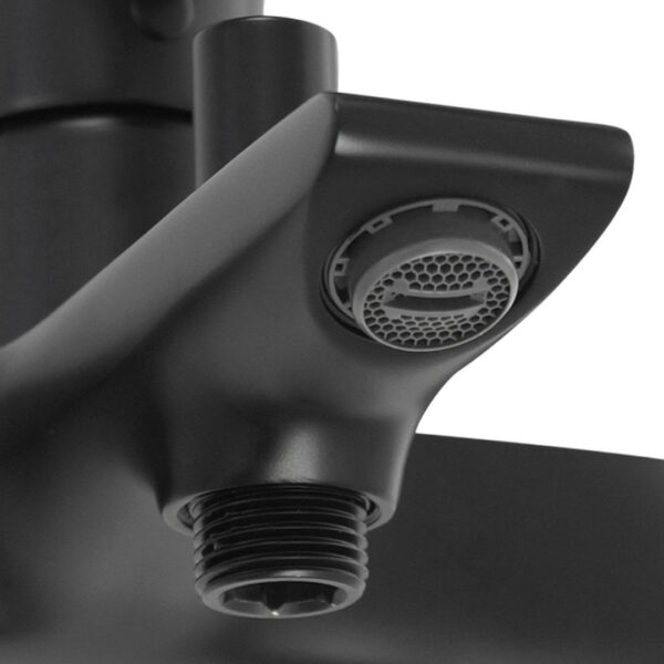 Material: Messing / Finish: schwarz matt / Breite der Armatur 19 cm / Ausladung 17 cm / Länge Mischhebel 10,7 cm