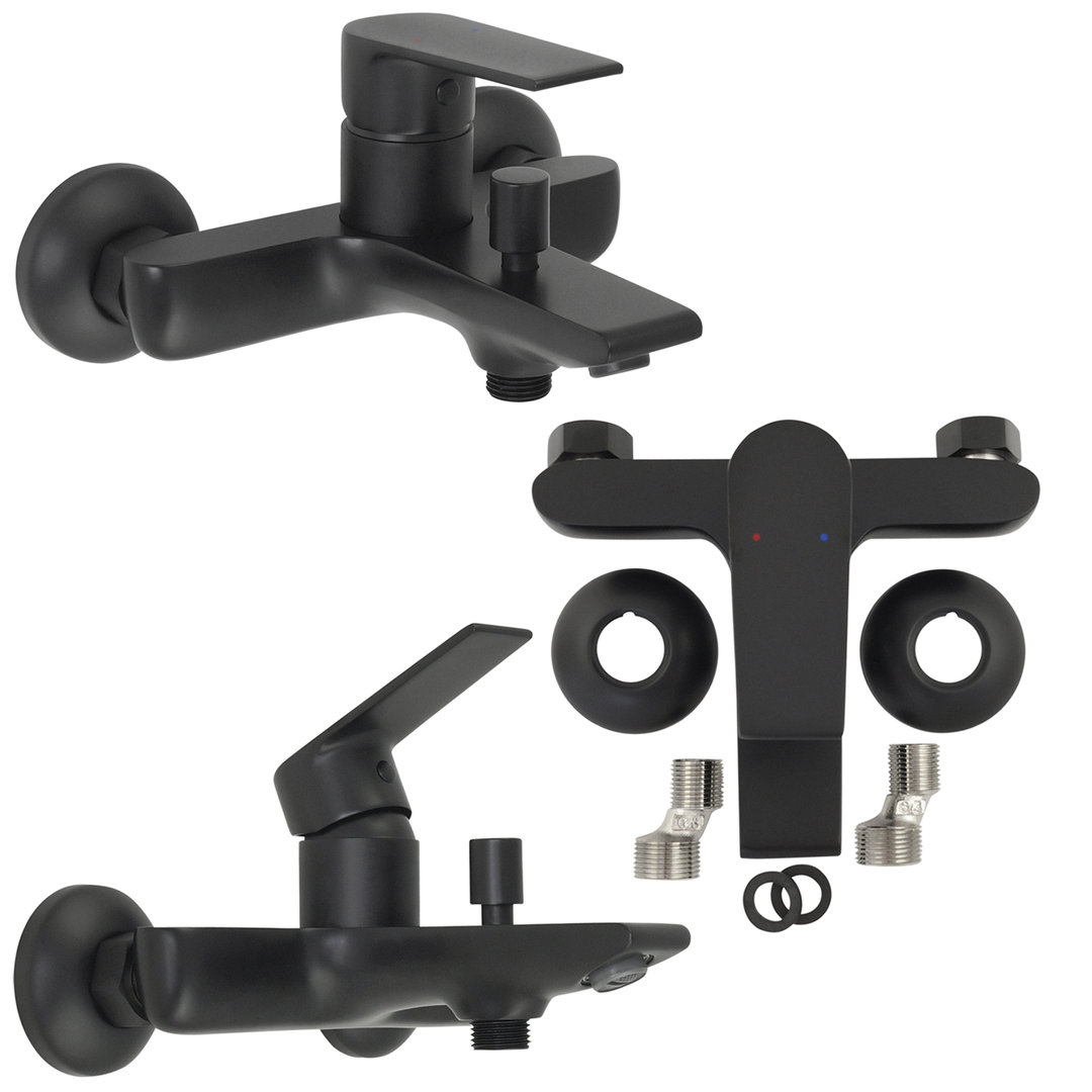 Welfenstein Wannenset WA-WBK-S11 mit Brausestange schwarz matt