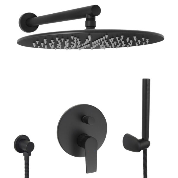 Lieferumfang: Unterputzarmatur, Regenbrause, Zulaufarm, Handbrause, Wandanschlussbogen, Handbrausehalterung, Brauseschlauch