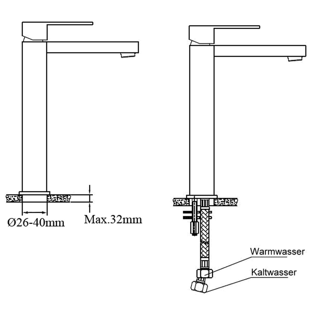 Höhe Auslauf Unterkante 22,6 cm