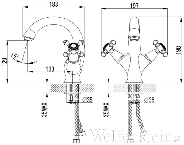 Welfenstein Nostalgie Waschtischarmatur WT-FV7-N